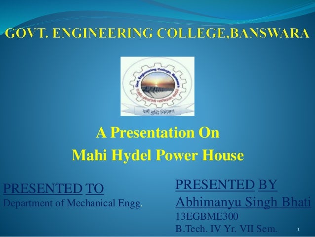Mahi Hydro Power Plant Summer Industrial Training Presentaion