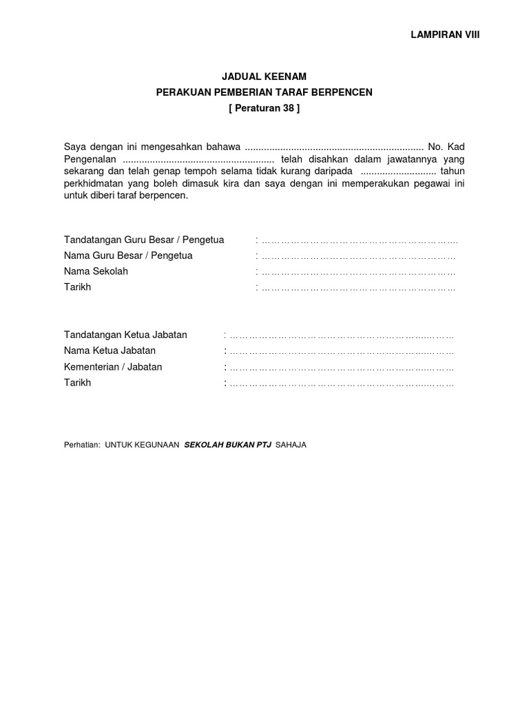 Jadual Keenam Lampiran Viii 1109 Perakuan Taraf Berpencen Pdf