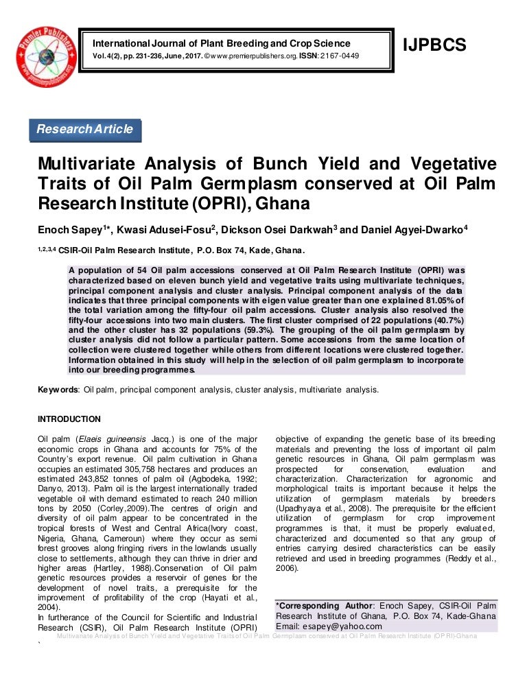 Multivariate Analysis Of Bunch Yield And Vegetative Traits Of Oil Pal