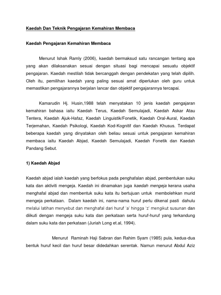 Doc Kertas Konseptual Strategi Pengajaran Kemahiran Membaca Kepada Kanak Kanak Prasekolah Nor Hayati Abu Jamin Academia Edu