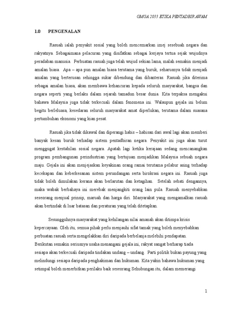 Assignment Gejala Rasuah