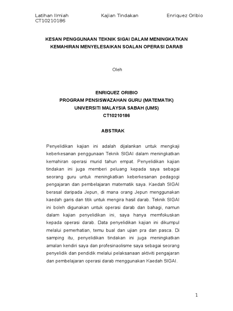 Pdf Contoh Kajian Tindakan Matematik Jega Vallu Academia Edu