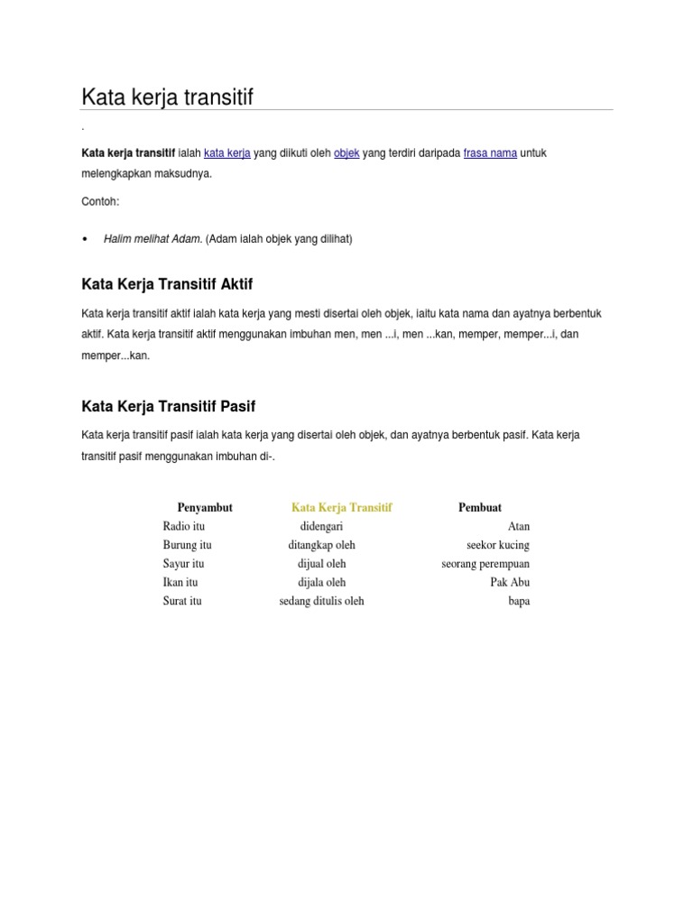 Kata Kerja Transitif Dan Kata Kerja Tak Transitif Pdf Document