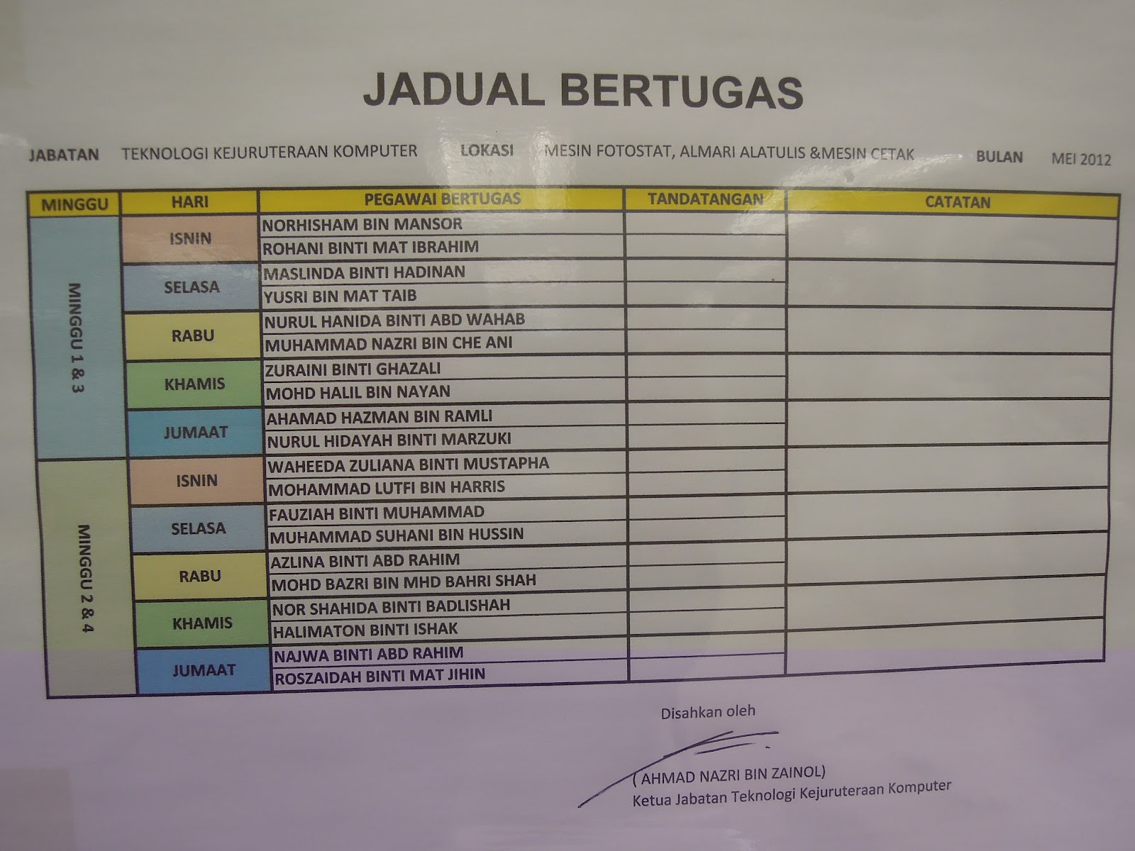 Contoh Jadual Bertugas Kelas Yang Boleh Diedit