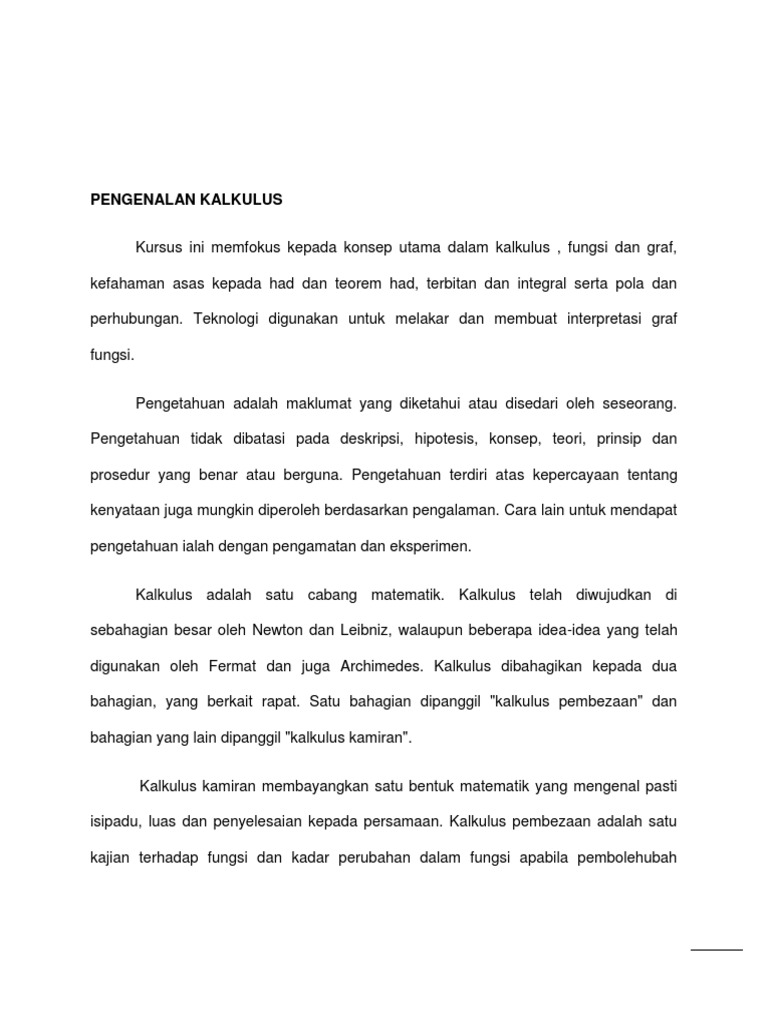 Buat Sorotan Literatur Mengenai Kalkulus Dalam Aspek Yang Berikut Dr Zaki