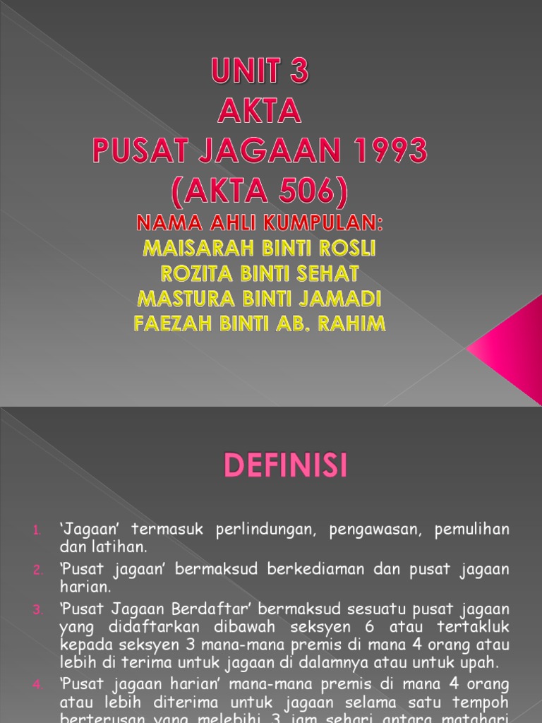 Akta Pusat Jagaan 1993 Unit 3