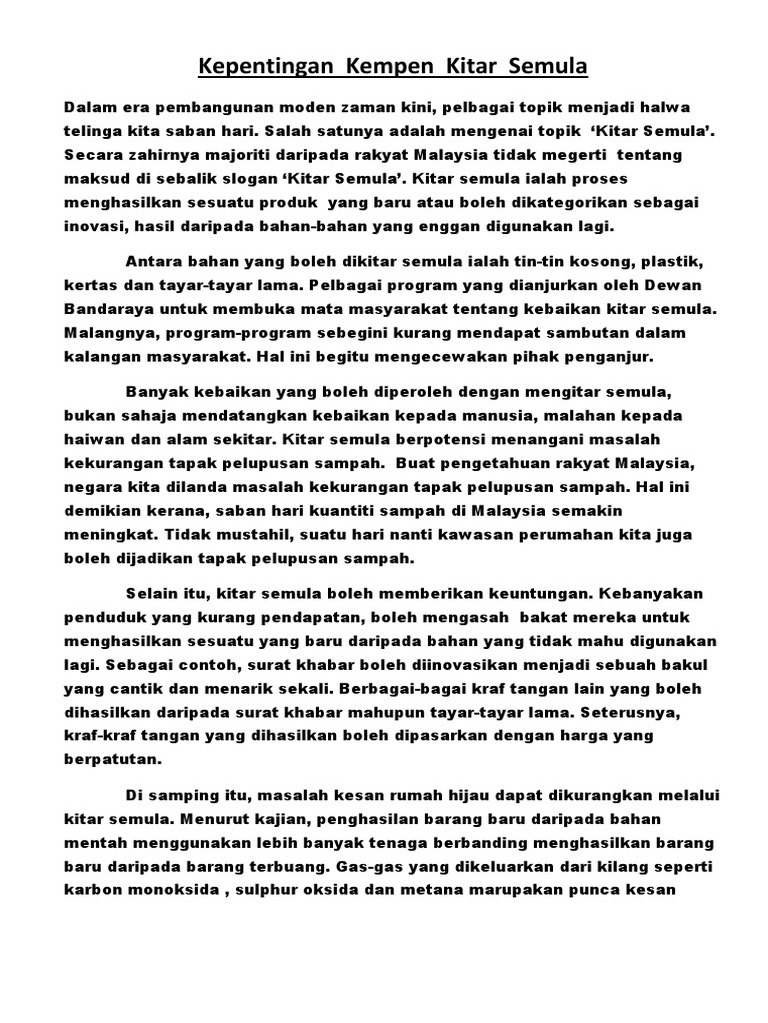 Cuit Cuit Bahasa Karangan Spm Bahagian A Ii Kitar Semula