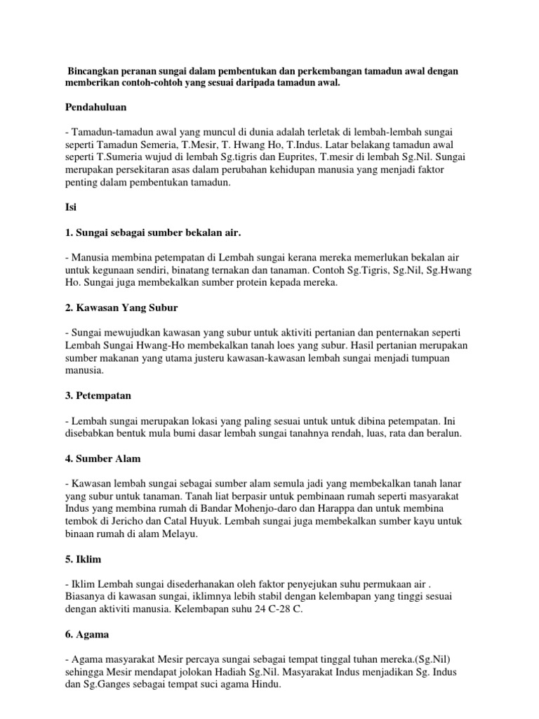 Bincangkan Peranan Sungai Dalam Pembentukan Dan An Tamadun Awal Dengan Memberikan Contoh