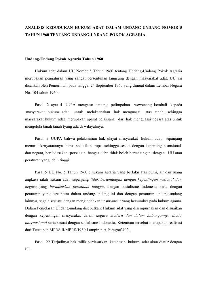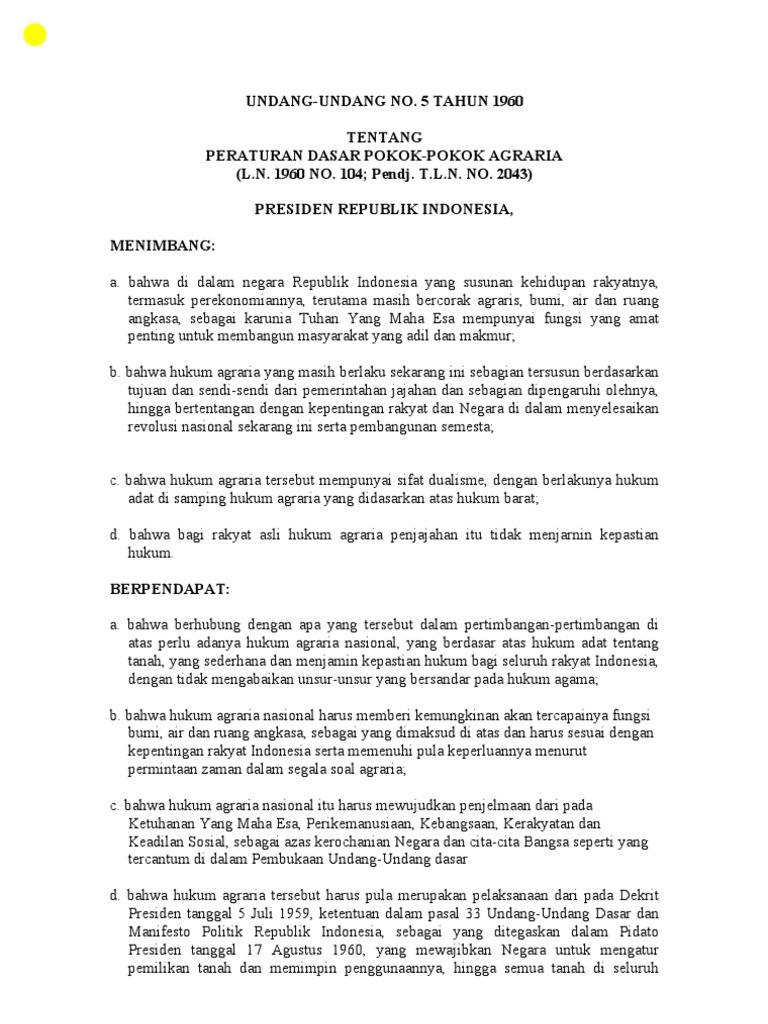 Uu No 5 Tahun 1960 Pembaharuan Agraria