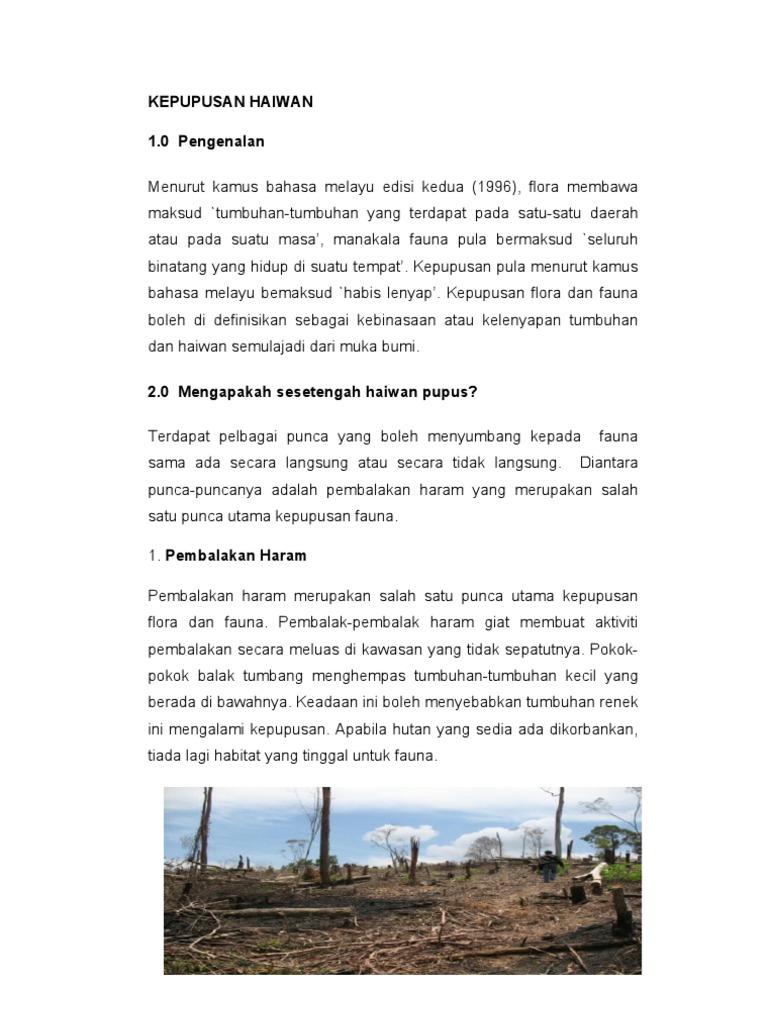 Faktor Faktor Yang Menyebabkan Berlakunya Kepupusan Fauna