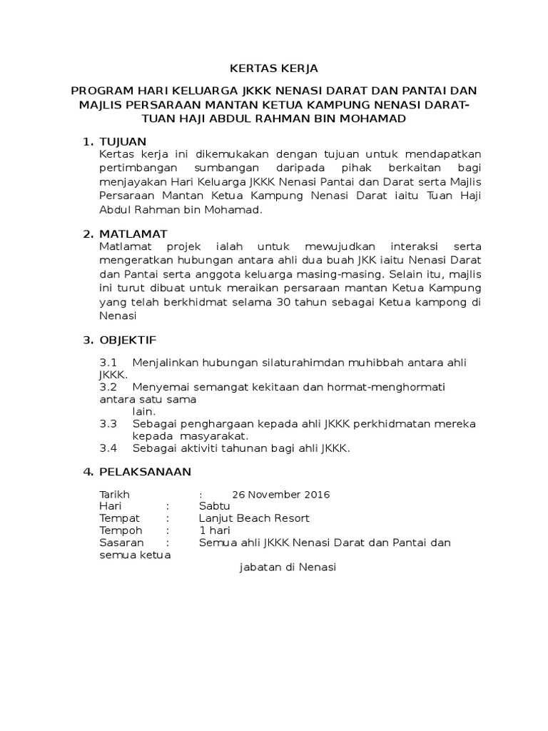 Doc Kertas Kerja Hari Keluarga Dan Sukan Tahunan Jumaadil Talakan Academia Edu