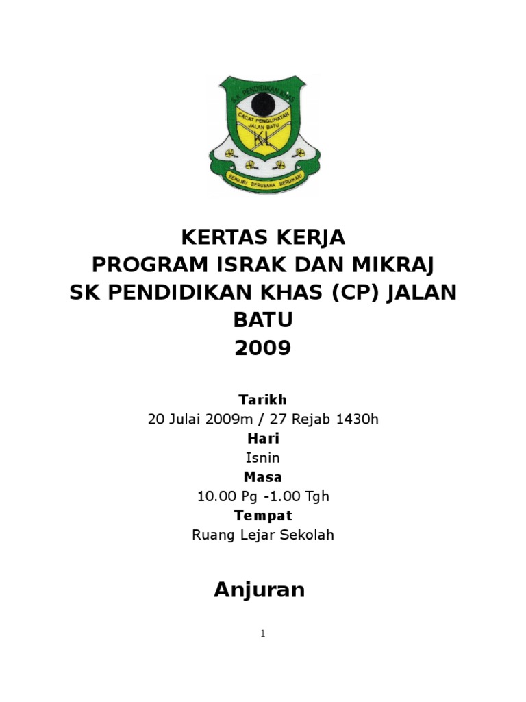 Kertas Kerja Program Israk Dan Mikraj Pendidik2u
