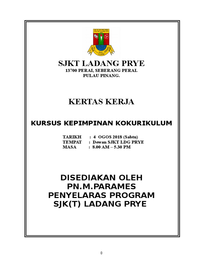 Kertas Kerja Kursus Kepimpinan Kokurikulum