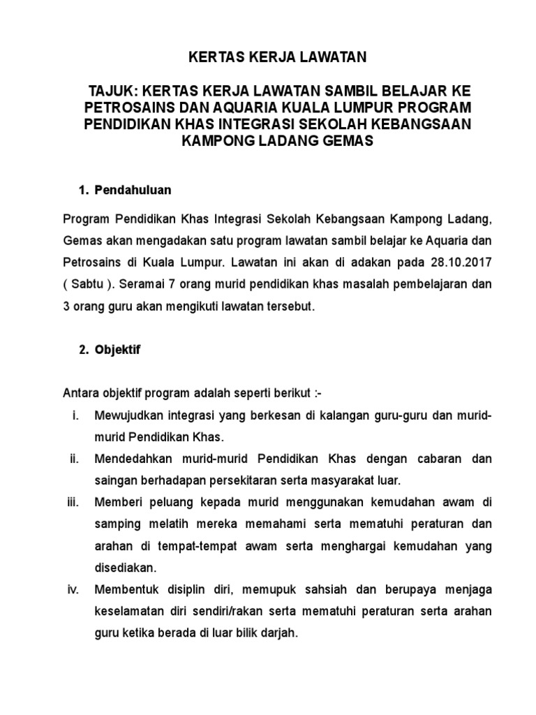 Kertas Kerja Lawatan Sambil Belajar Pages 1 4 Text Version Anyflip