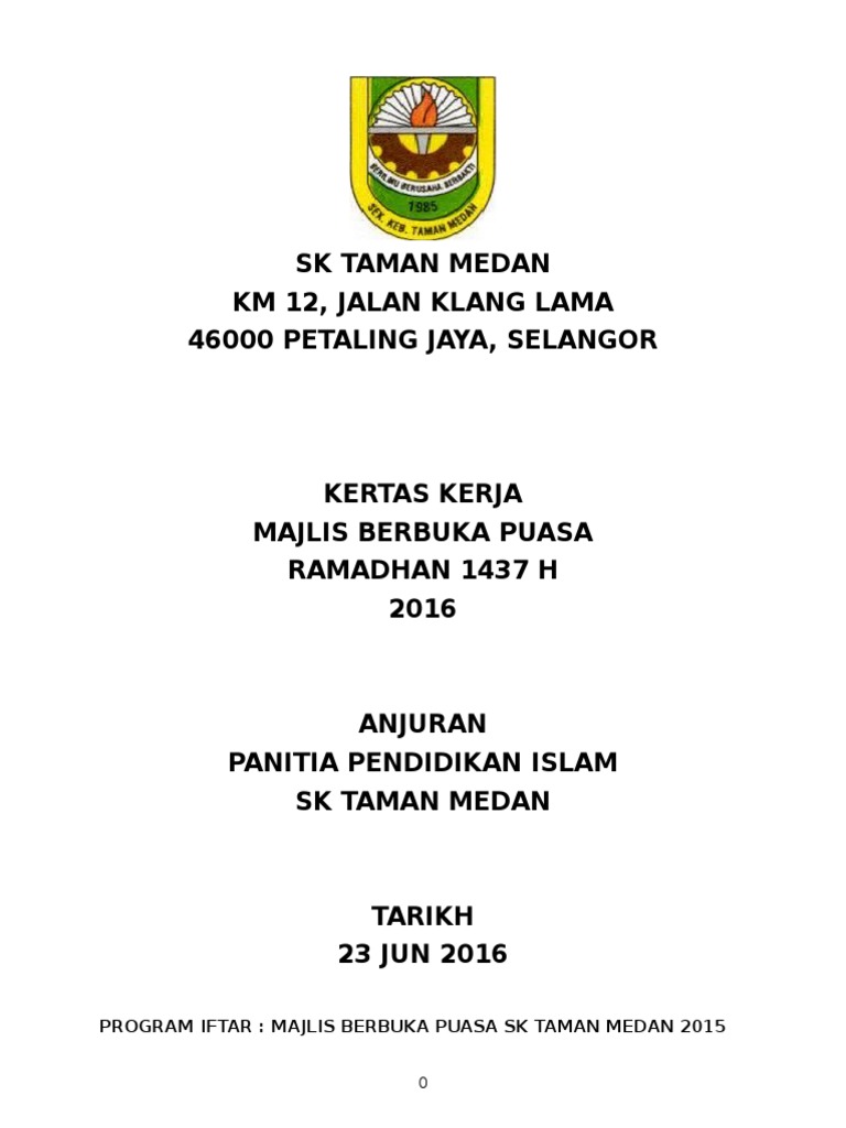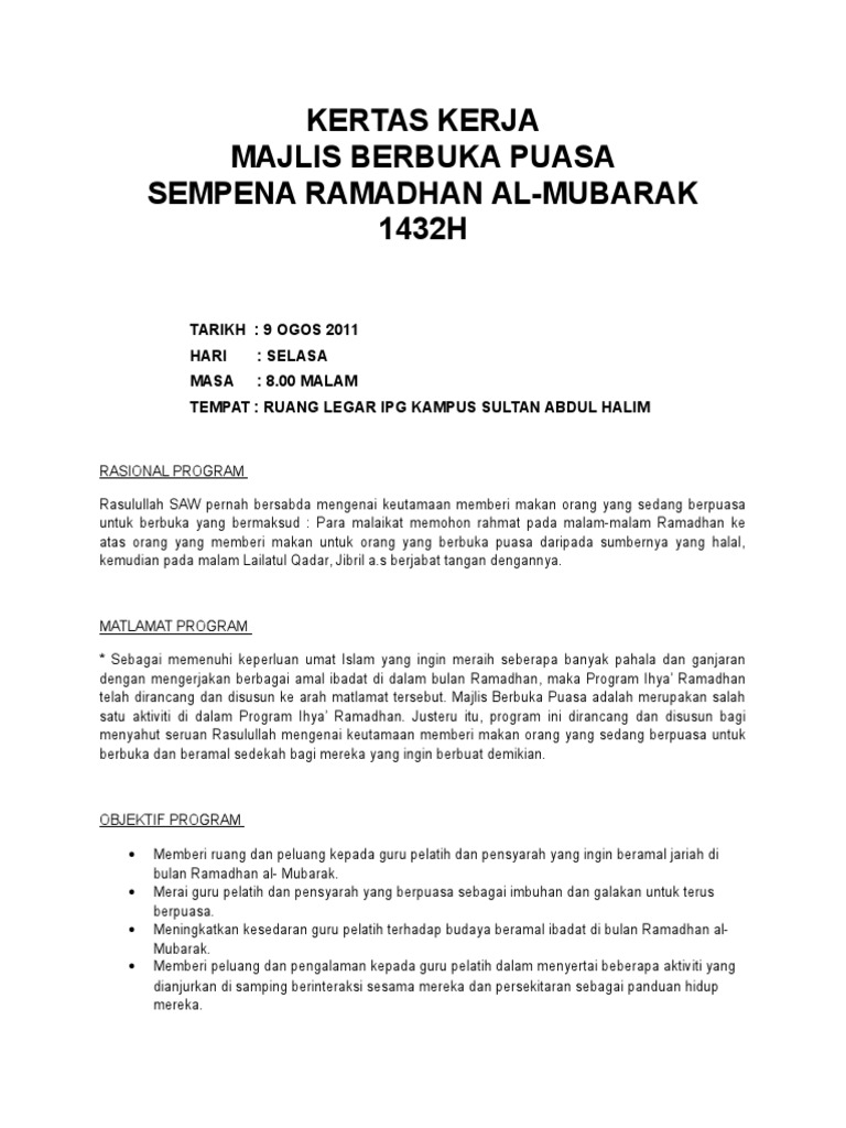 Kertas Kerja Majlis Berbuka Puasa 2017 Doc