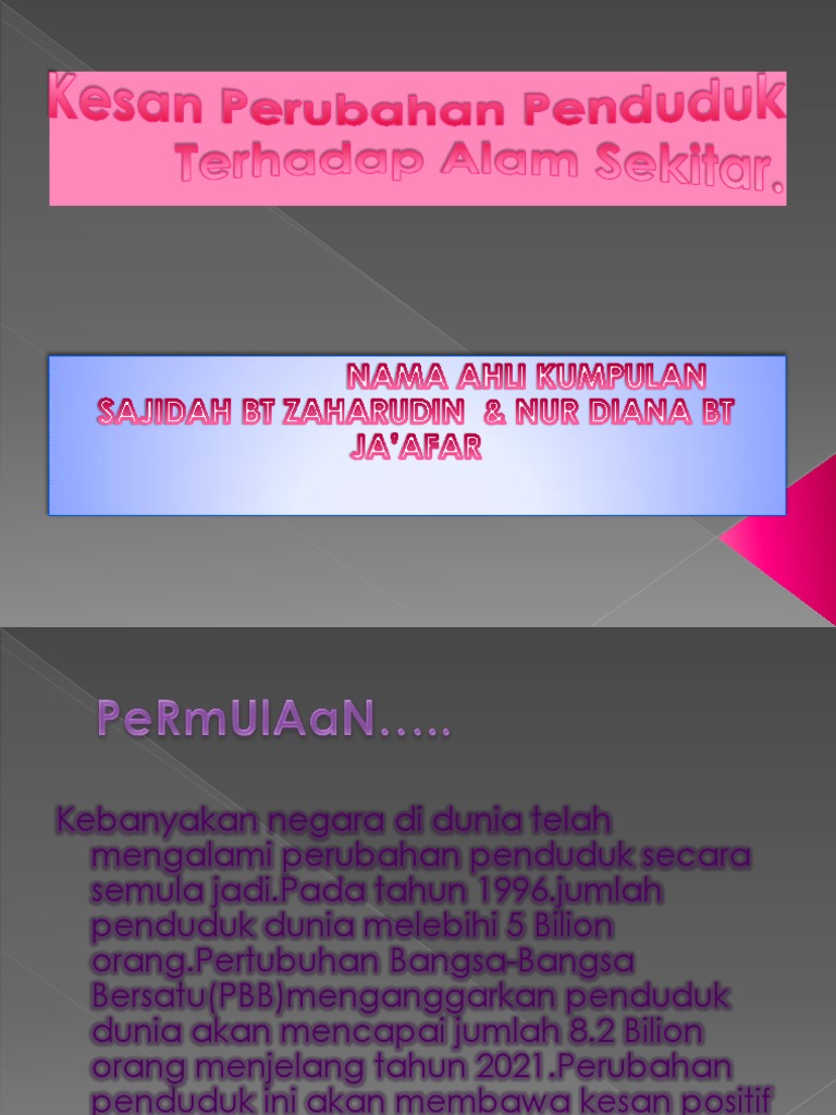 Kesan Perubahan Penduduk Terhadap Alam Sekitar By