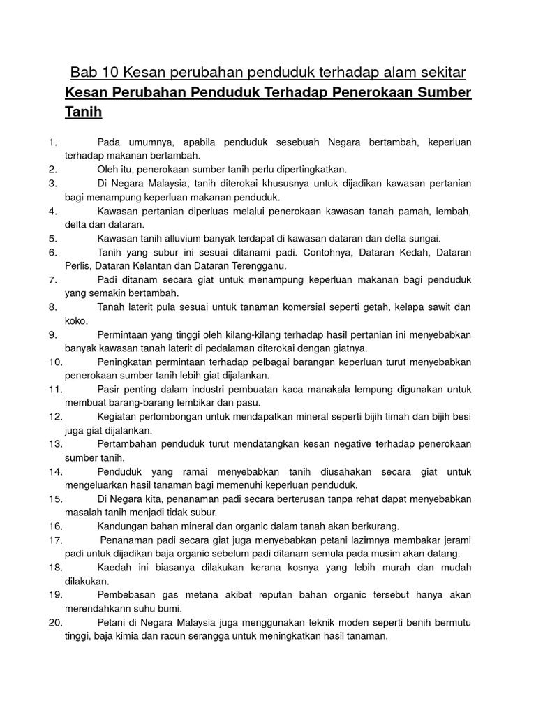 Bab 10 Kesan Perubahan Penduduk Terhadap Alam Sekitar Pdf Download Gratis