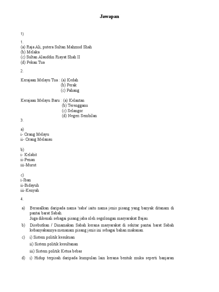Kesultanan Melayu Melaka Menjadi Asas Kerajaan Masa Kini Band 1 Jawapan