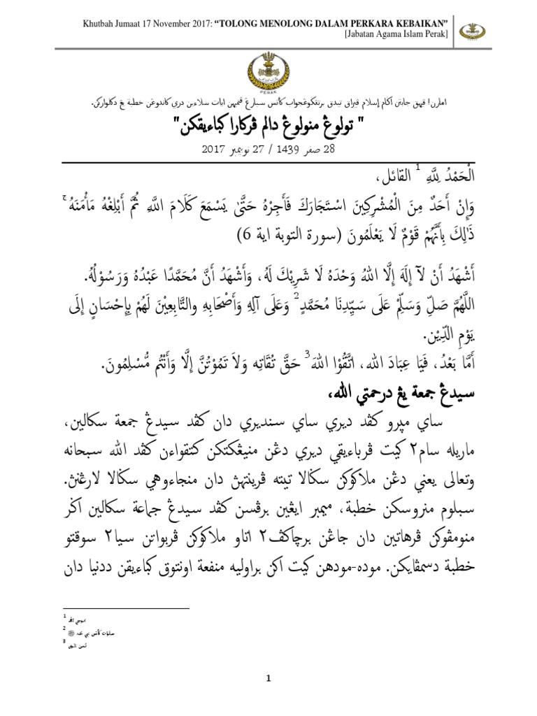 Teks Khutbah Jumaat 31 Januari 2020m Jabatan Agama Islam Perak Facebook