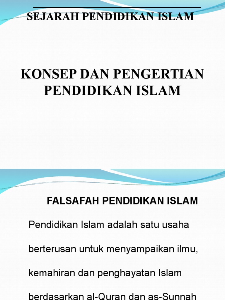 Pandangan tokoh tokoh islam pendidikan adalah merupakan proses penyatuan semua ilmu pengetahuan dibawah al quran yang menjadi teras pendidikan. Sekolah hanya merupakan sebahagian kecil daripada spektrum menyeluruh yang mempengaruhi pendidikan seseorang individu sila lihat rajah 1 sumber. Pendidikan adalah siste edukasi yang dijalankan berdasarkan garis hidup dari suatu bangsa.