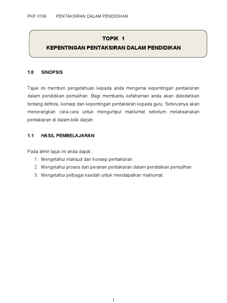 Nota Padat Edup3063 Pentaksiran Dalam Pendidikan