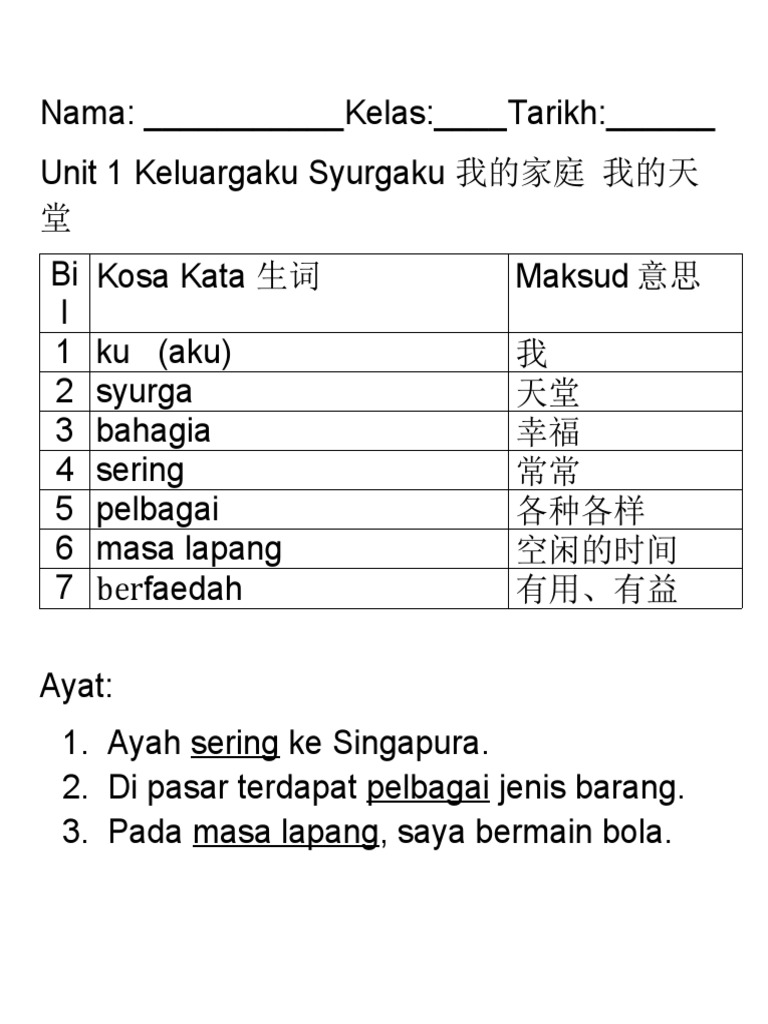 Kosa Kata Bm Tahun 1 Sjkc Unit 1