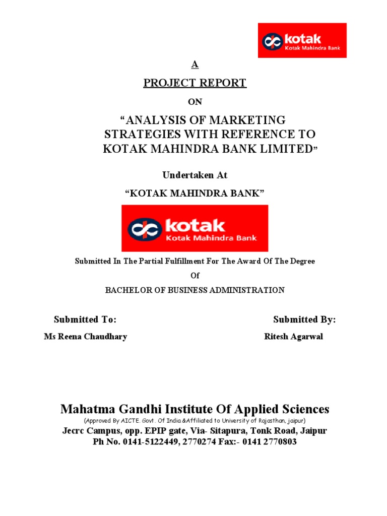 Project Report On Kotak Mahindra Bank Automated Teller Machine Cheque