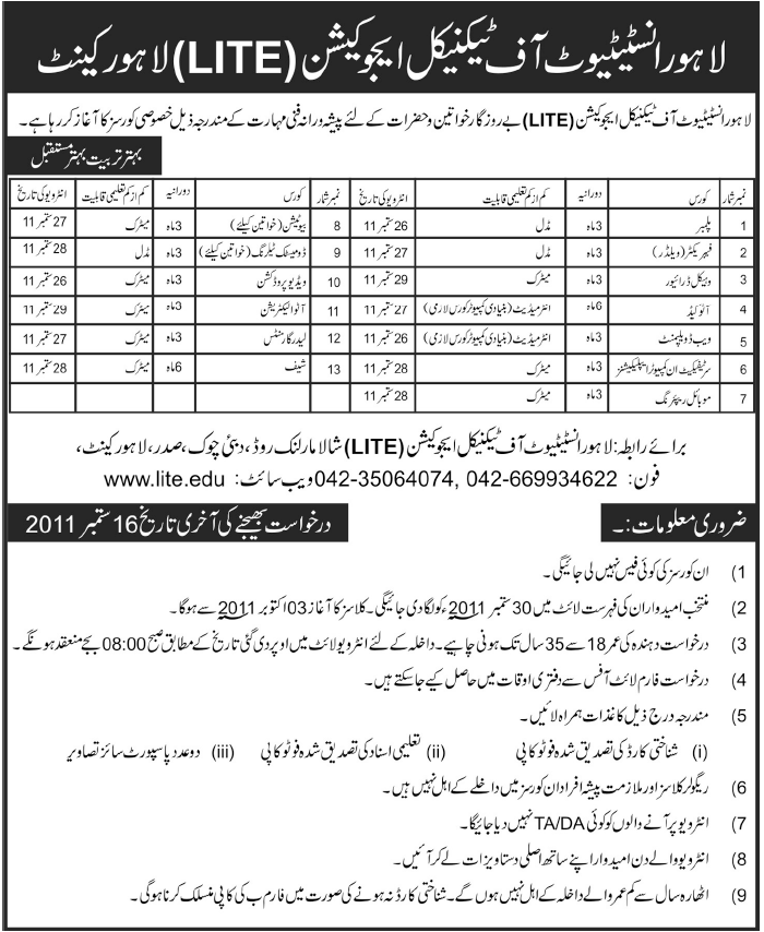 Admissions Open 2014 In Lahore Institute Of Technical Education Lite Lahore For Certifications In Computer Sciences Mobile Technology Technical Electrical Courses Last Date 03 10 2014 Apply Now Adspk Pk Adspk Pk Very