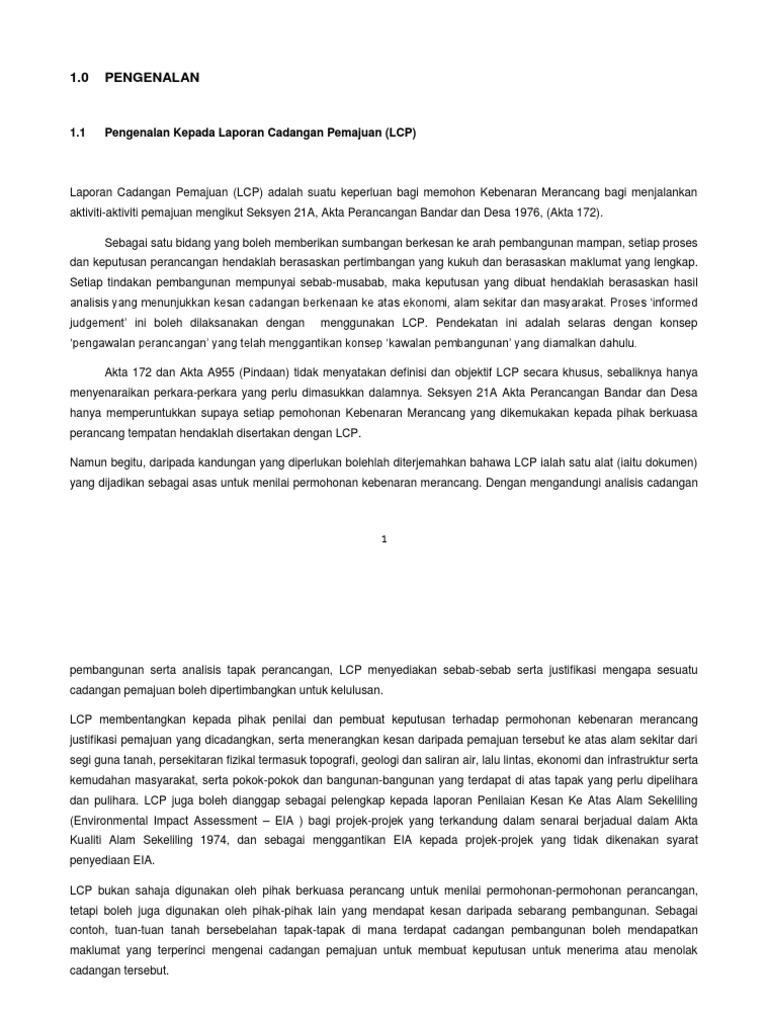 L C P Laporan Cadangan Pemajuan Development Proposal Proposal Report Perancangan Bandar Dan Desa 1976 Lengkap Dan Mempunyai Hasil Analisis Impak Kepada Ekonomi