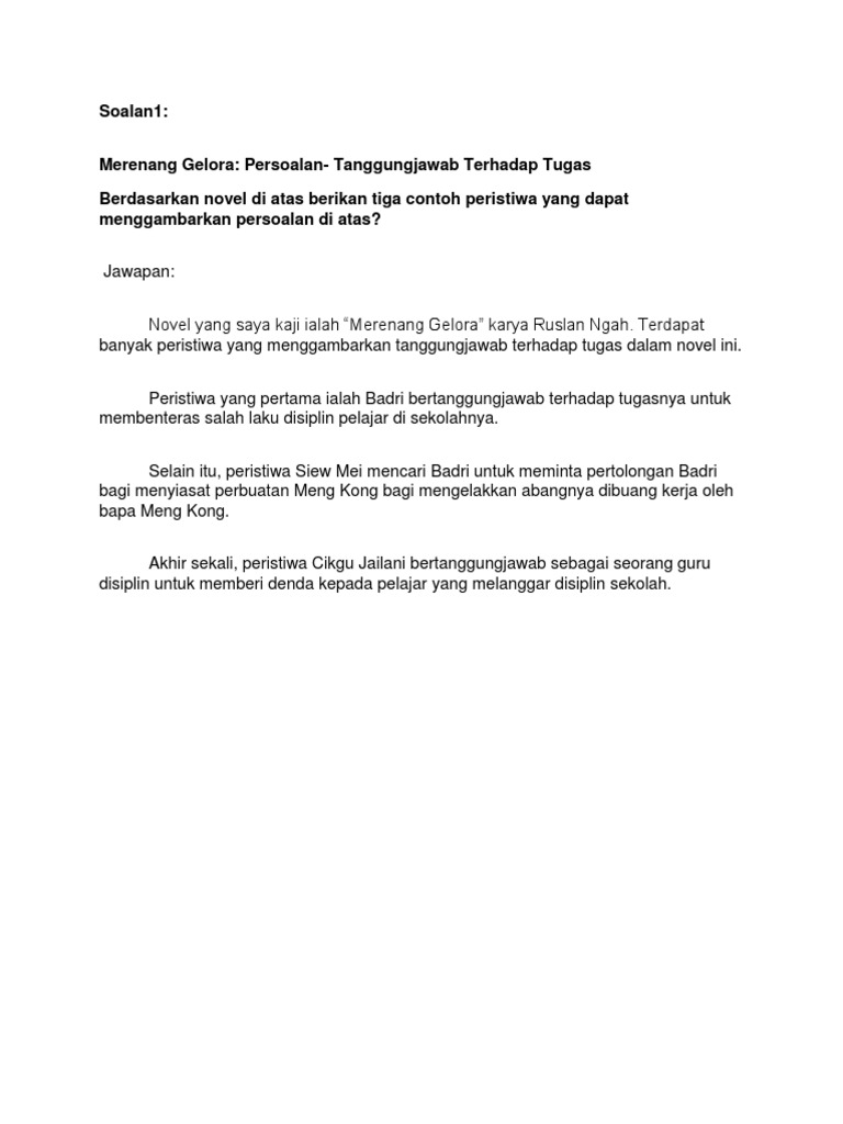 Novel Merenang Gelora Jawapan