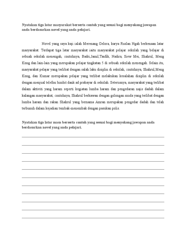 Nyatakan Tiga Latar Masyarakat Berserta Contoh Yang Sesuai Bagi Menyokong Jawapan Anda Berdasarkan Novel Yang Anda Pelajari