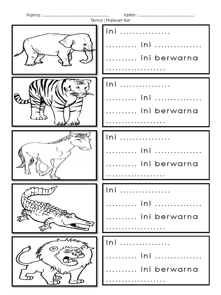 Bahasa Malaysia Prasekolah Latihan Haiwan Liar Preschool Activities Printable Preschool Learning Activities Preschool Learning