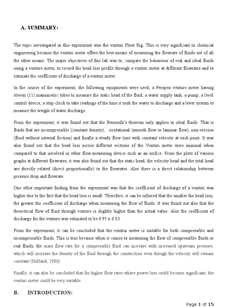 Venturi Flow Rig Experiment Flow Measurement Fluid Dynamics