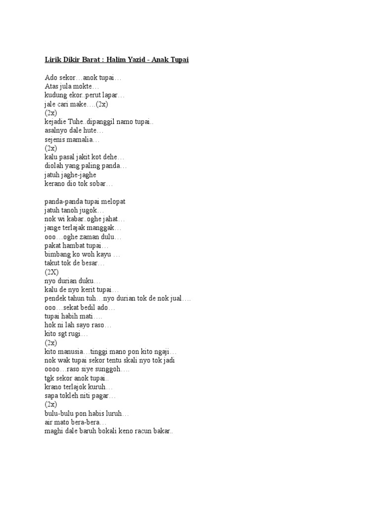 Lirik Dikir Barat Halim Yazid Anak Tupai