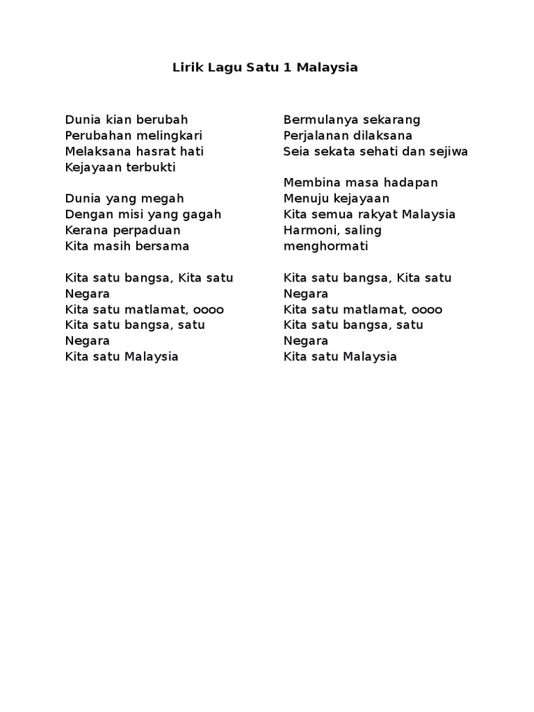 Lirik Lagu Satu Malaysia Download Docx