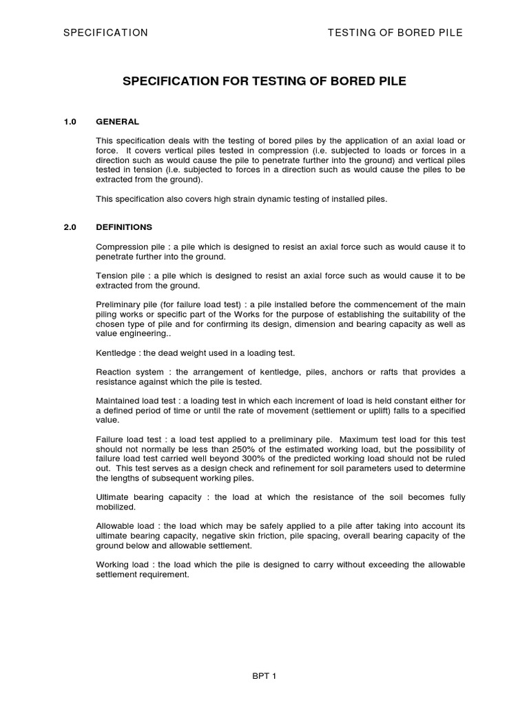 Specification For Bored Piles Testing Sp038 Deep Foundation Calibration