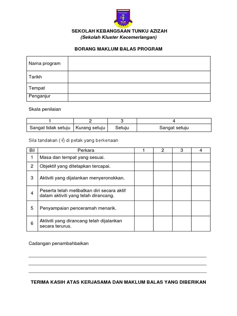 Borang Maklum Balas Program Sekolah