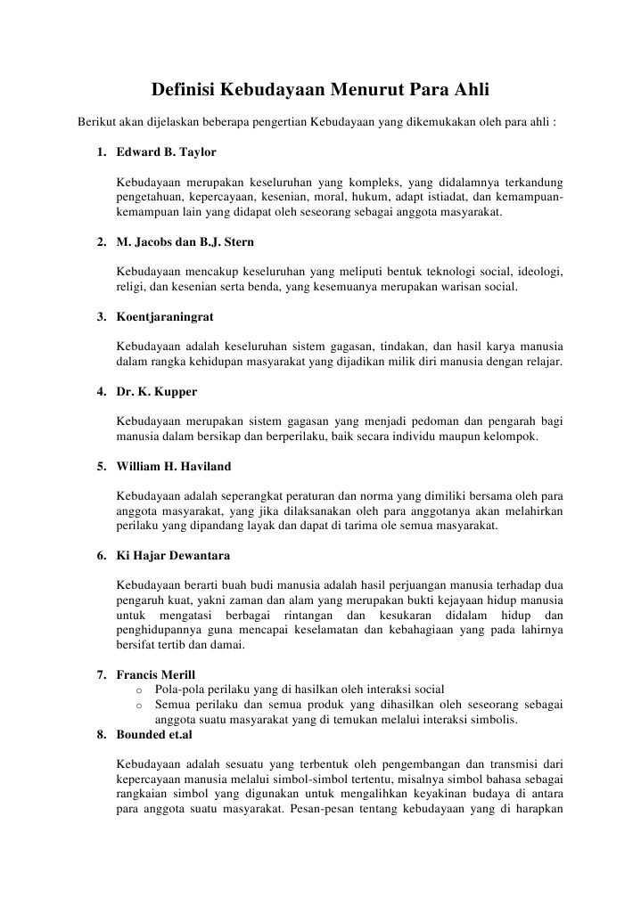 Doc Definisi Kebudayaan Menurut Para Ahli Har Anca Academia Edu