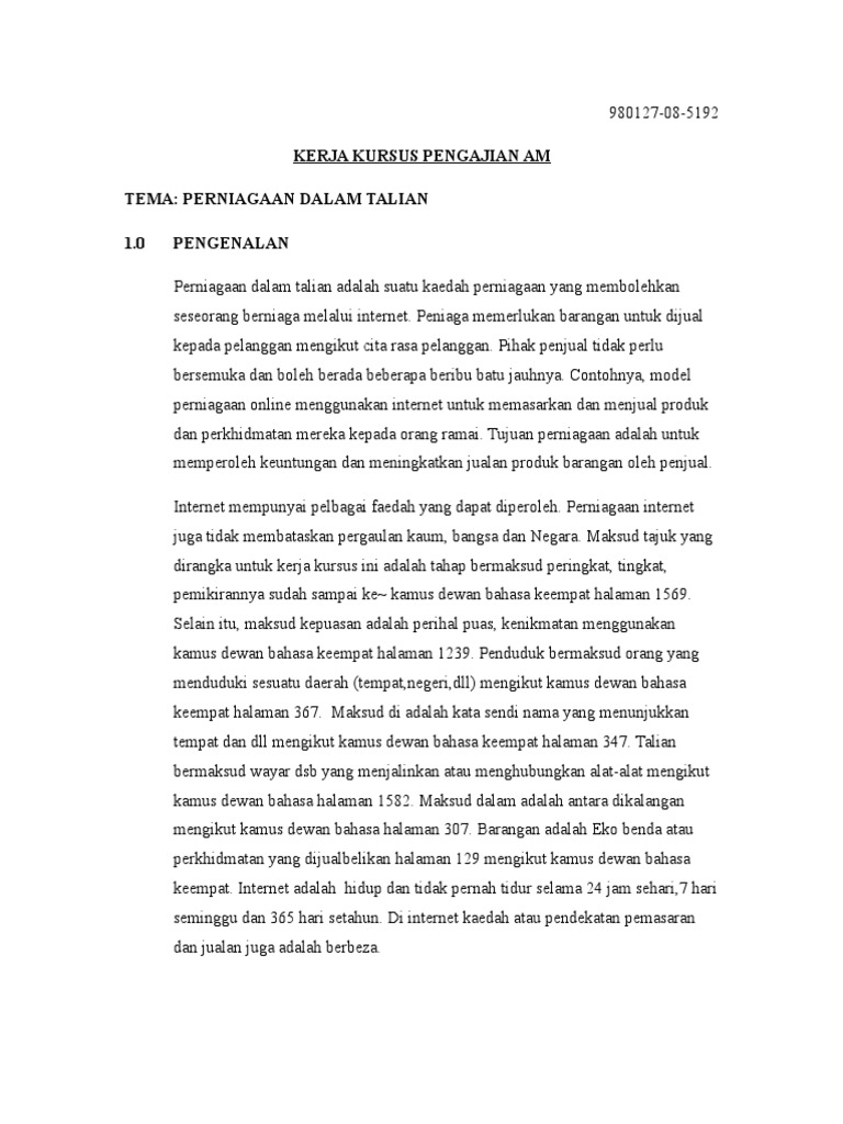 Perniagaan Dlm Talian Karangan Docx Perniagaan Dalam Talian Menurut Kamus Dewan Bahasa Edisi Yang Keempat Perniagaan Elektronik E Niaga Atau Course Hero