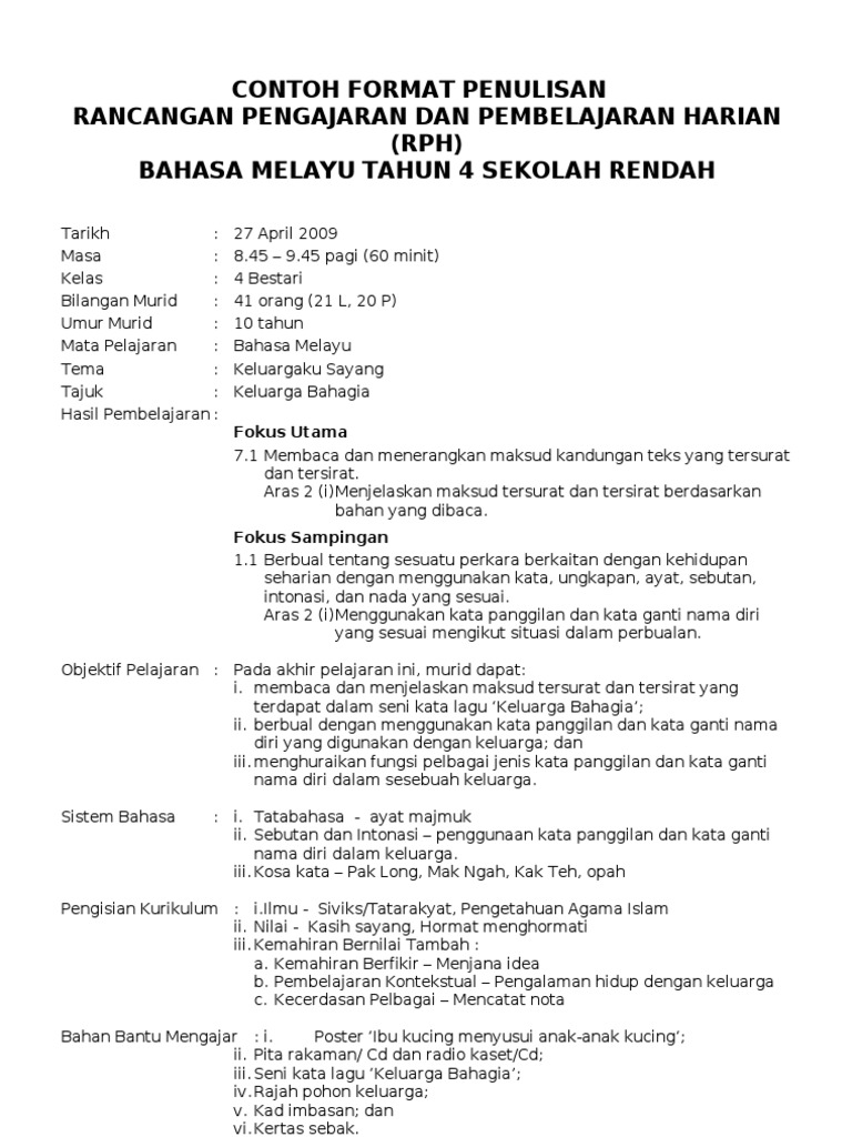 Contoh Rancangan Pengajaran Harian
